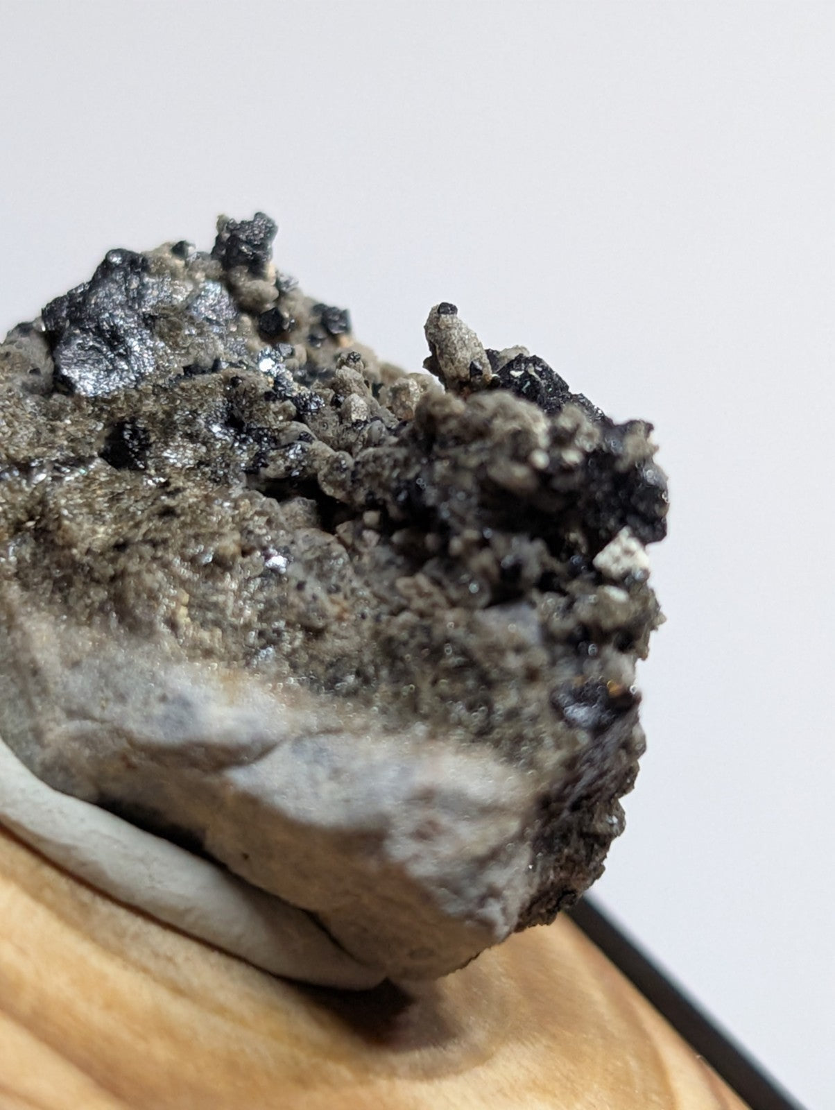 It is mounted in our new boxes we designed and made utilizing a naturally UV reactive Pine knot wood that comes from our land in Arkansas. The back is a transparent photographic print of one of our photos of Highway 51 (specifically the famous cove creek bridge) that runs through the central portions of Magnet Cove, Arkansas (ie the Magnet Cove Igneous Complex). These are unique and exclusive to our shop.