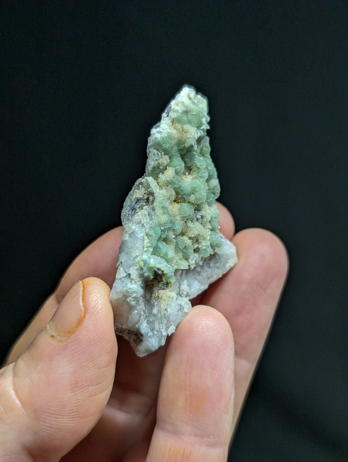 A phenomenal collectors specimen with multiple hues of green and showcases beautifully crystallized botryoidal formations on a quartz matrix.