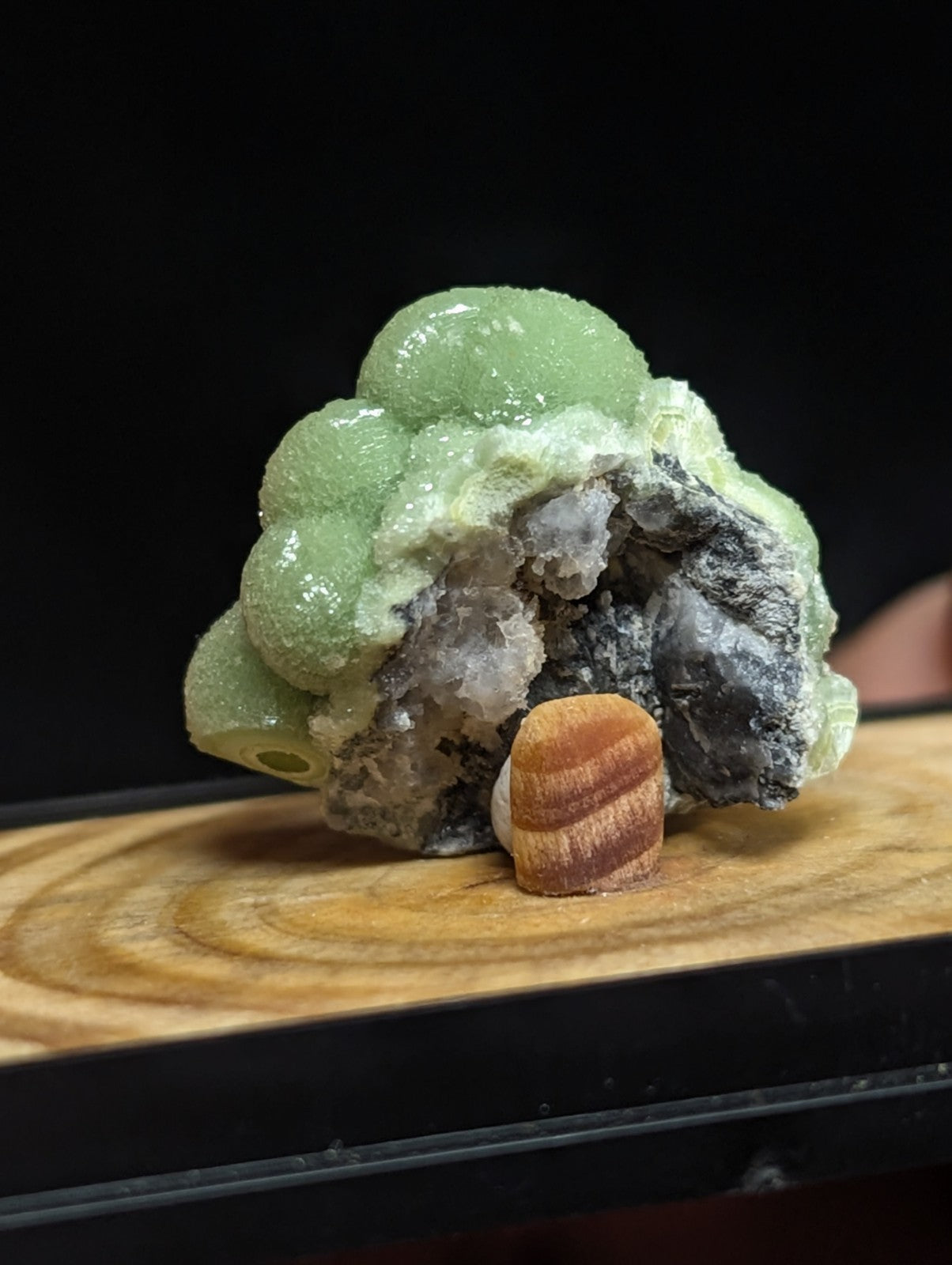 A+++ Wavellite, w/ handmade wood mount and photo case - Old Stock - Montgomery County, Arkansas