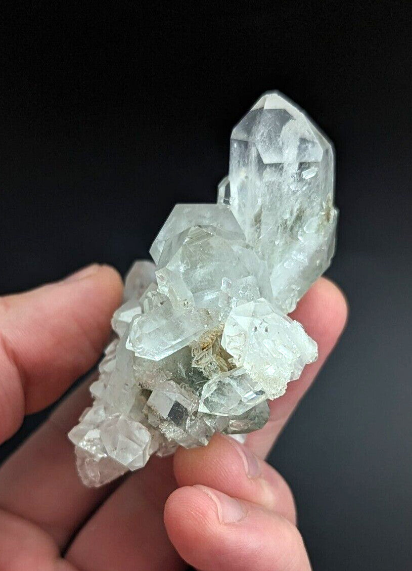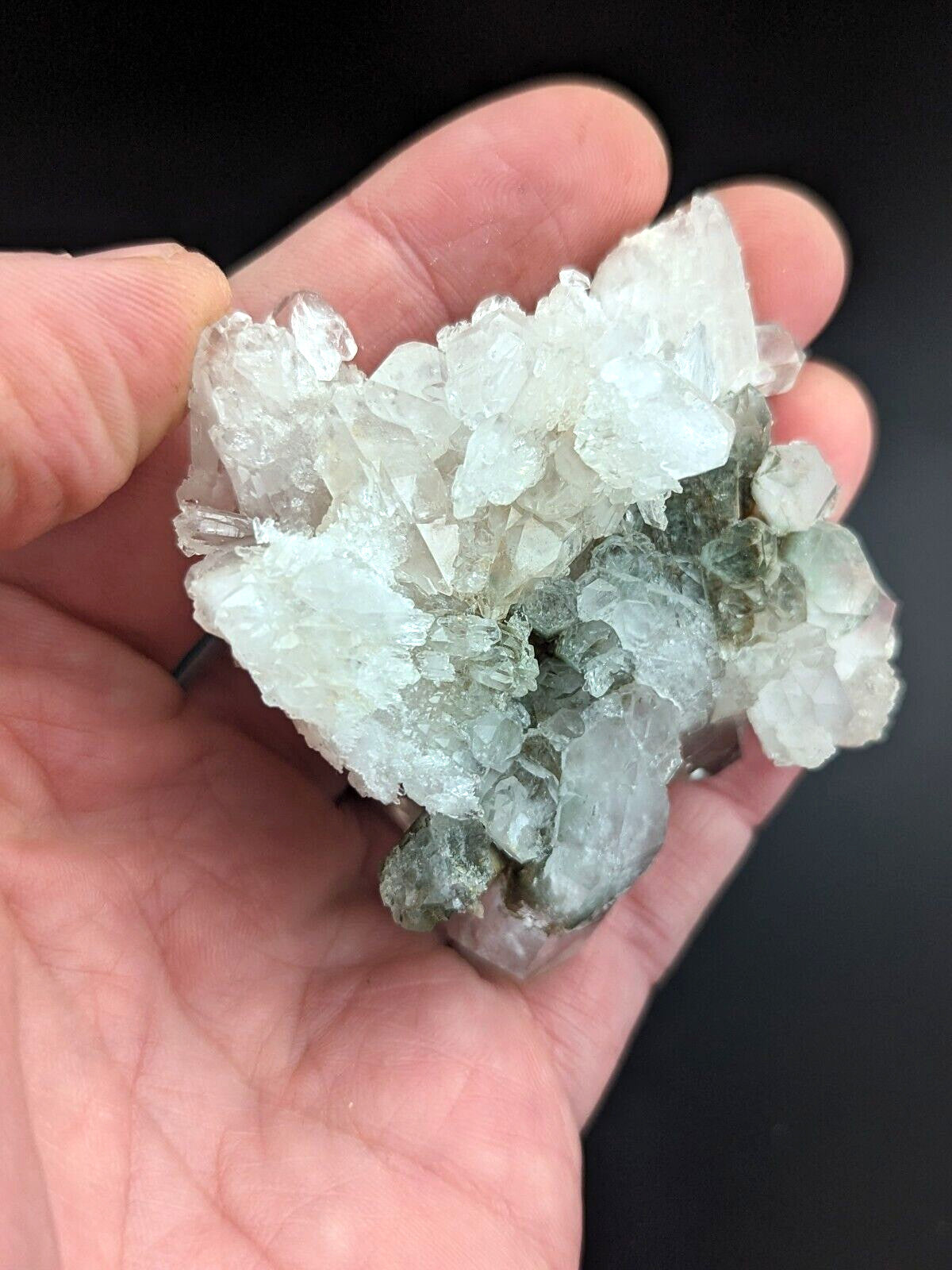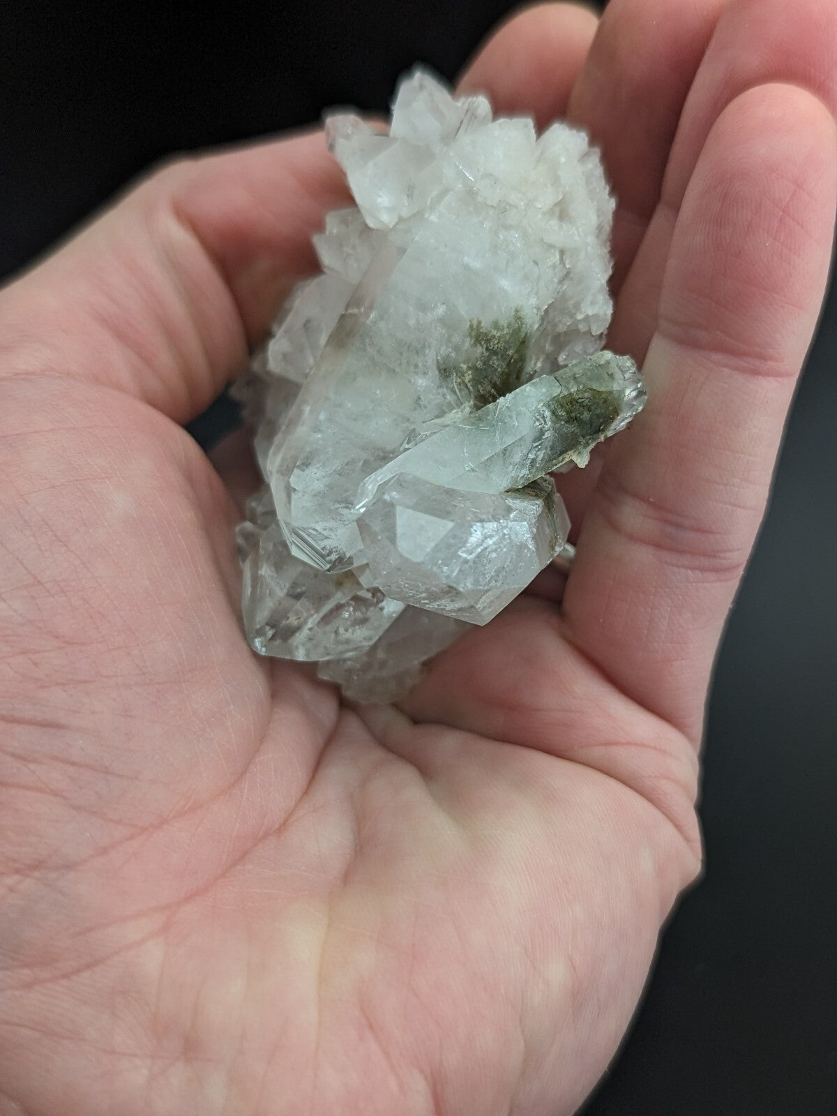 From the person we acquired these from: "the chlorite quartz was from a man named Mike Crain who was a road builder who was working next to the Old Willis Mine. When he ran into pockets of crystal, he would stop and collect - about 10.000 lbs total. Gary bought all of it from Mike and then Jack bought the Chlorite ones from Leo and Gary. Would have been late 80's, early 90's. So, these come from the north end of the road cut close to Old Willis Mine."