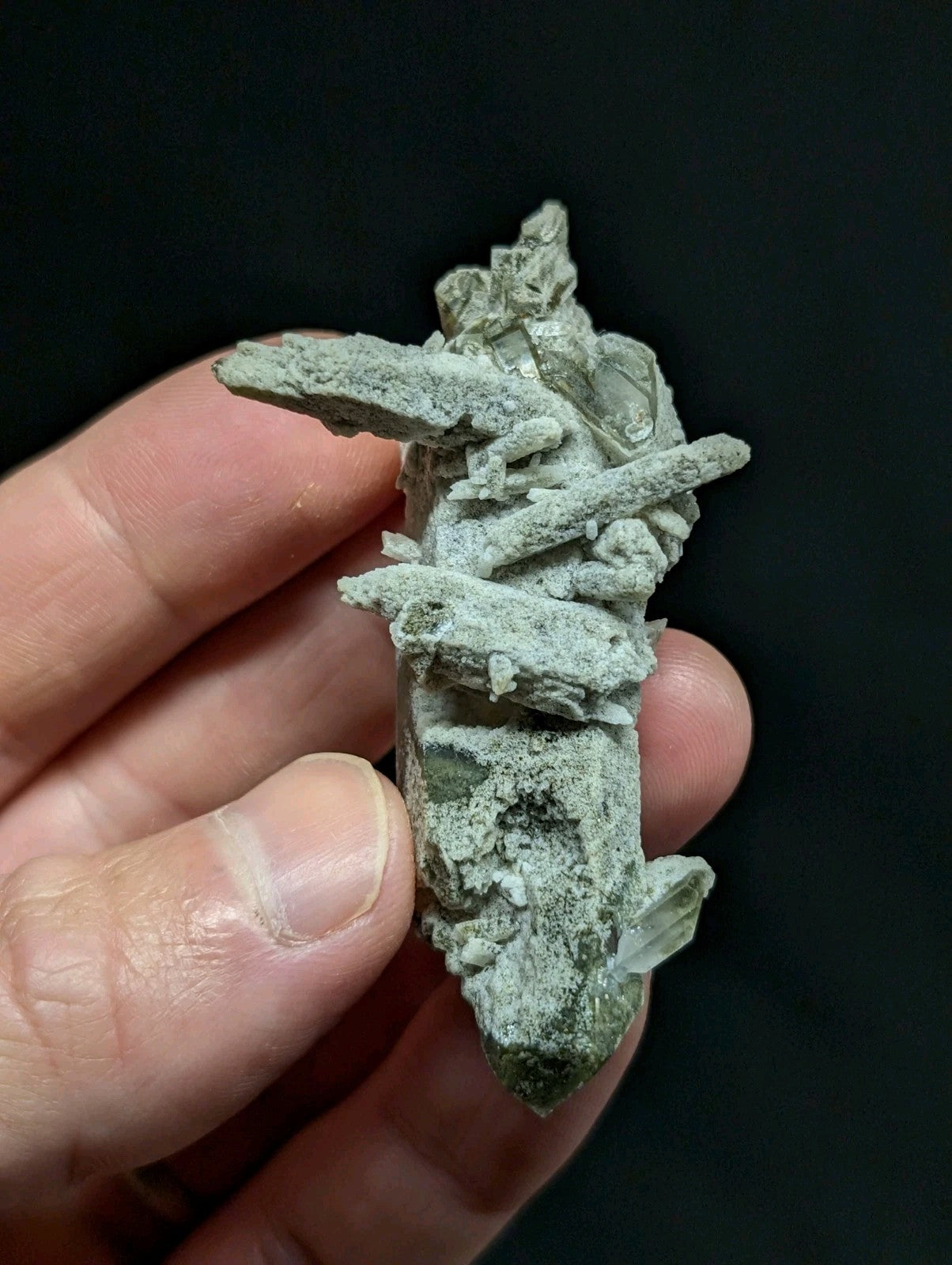 These were dug by a road builder back in the 80s or 90s, near the Old Willis Mine (famous for Green Chlorite Phantom Quartz Crystals.