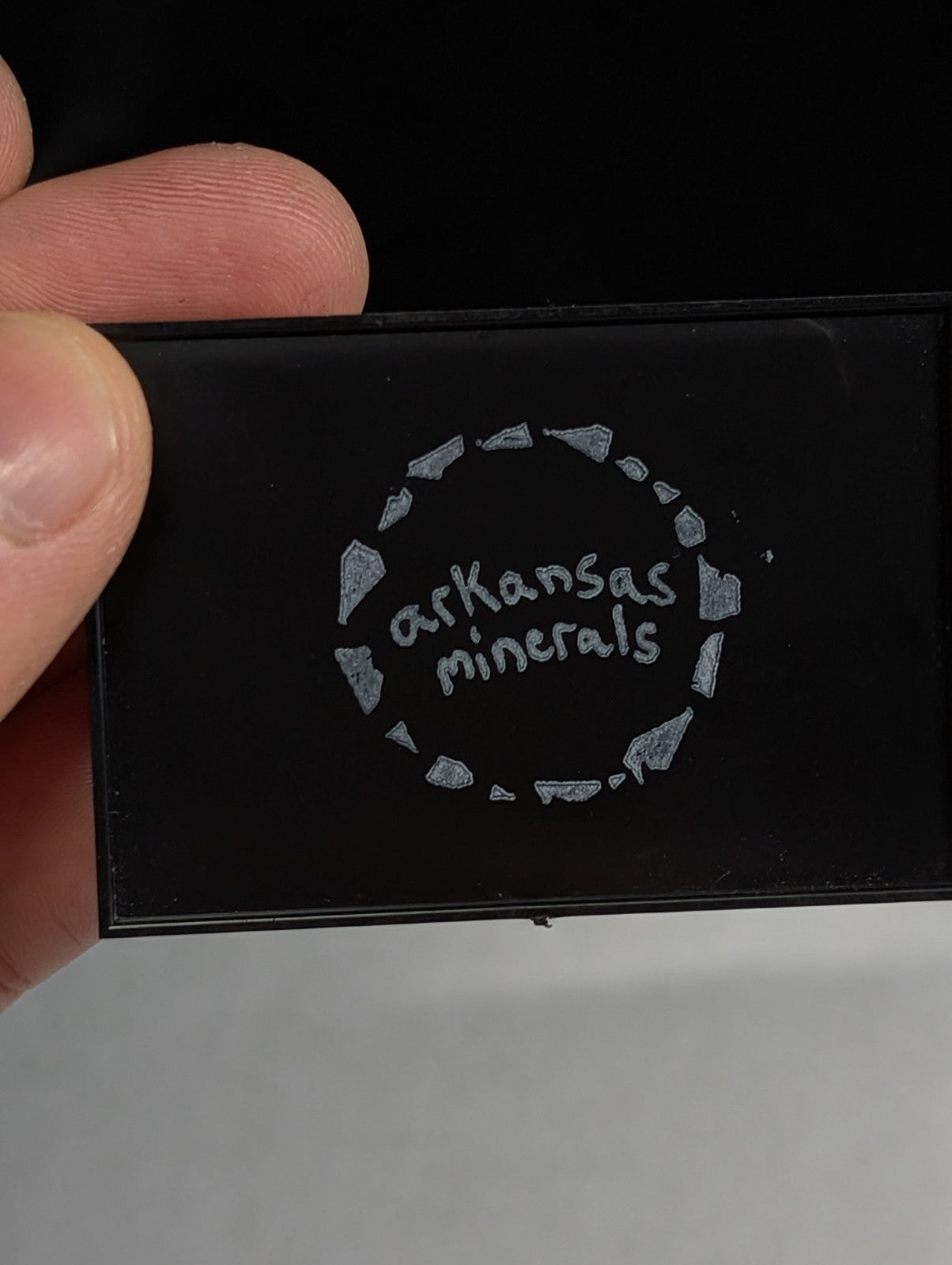 It is mounted in our new boxes we designed and made utilizing a naturally UV reactive Pine knot wood that comes from our land in Arkansas. The back is a photographic print of one of our photos of the Ouachita mountain range in Arkansas. These are unique and exclusive to our shop.