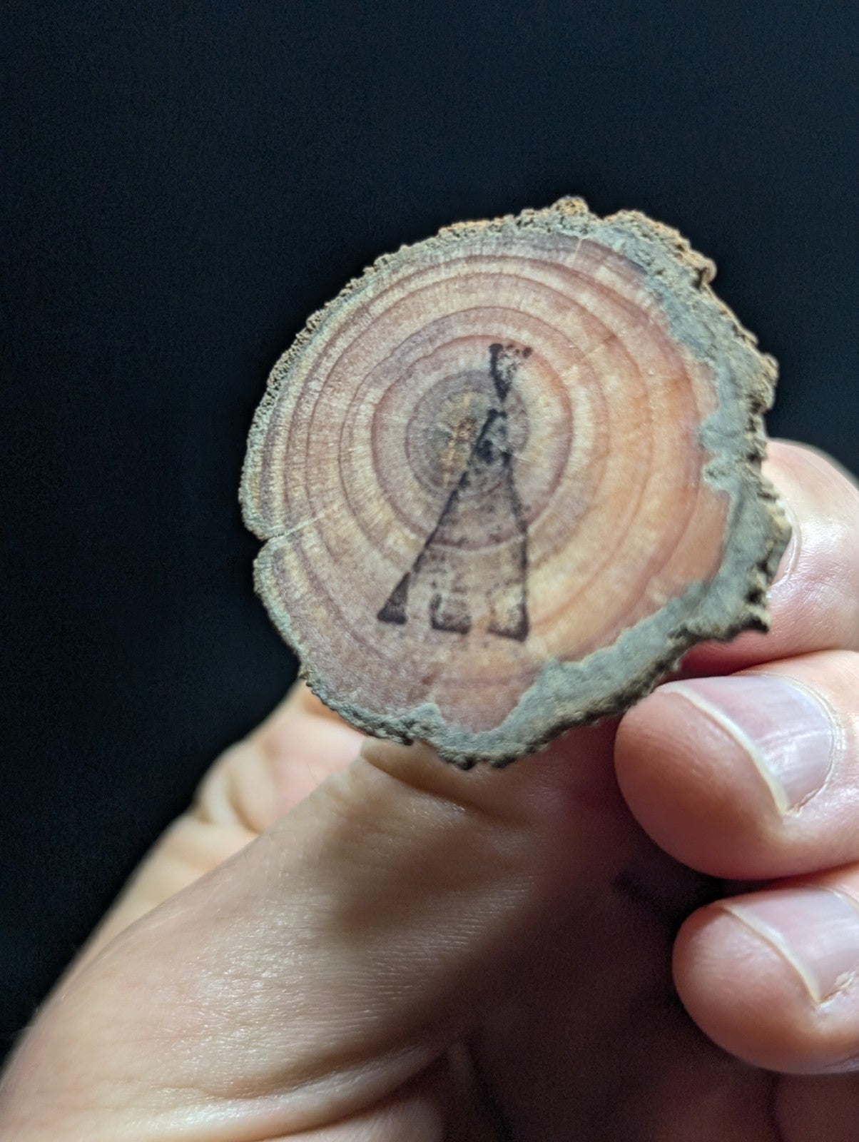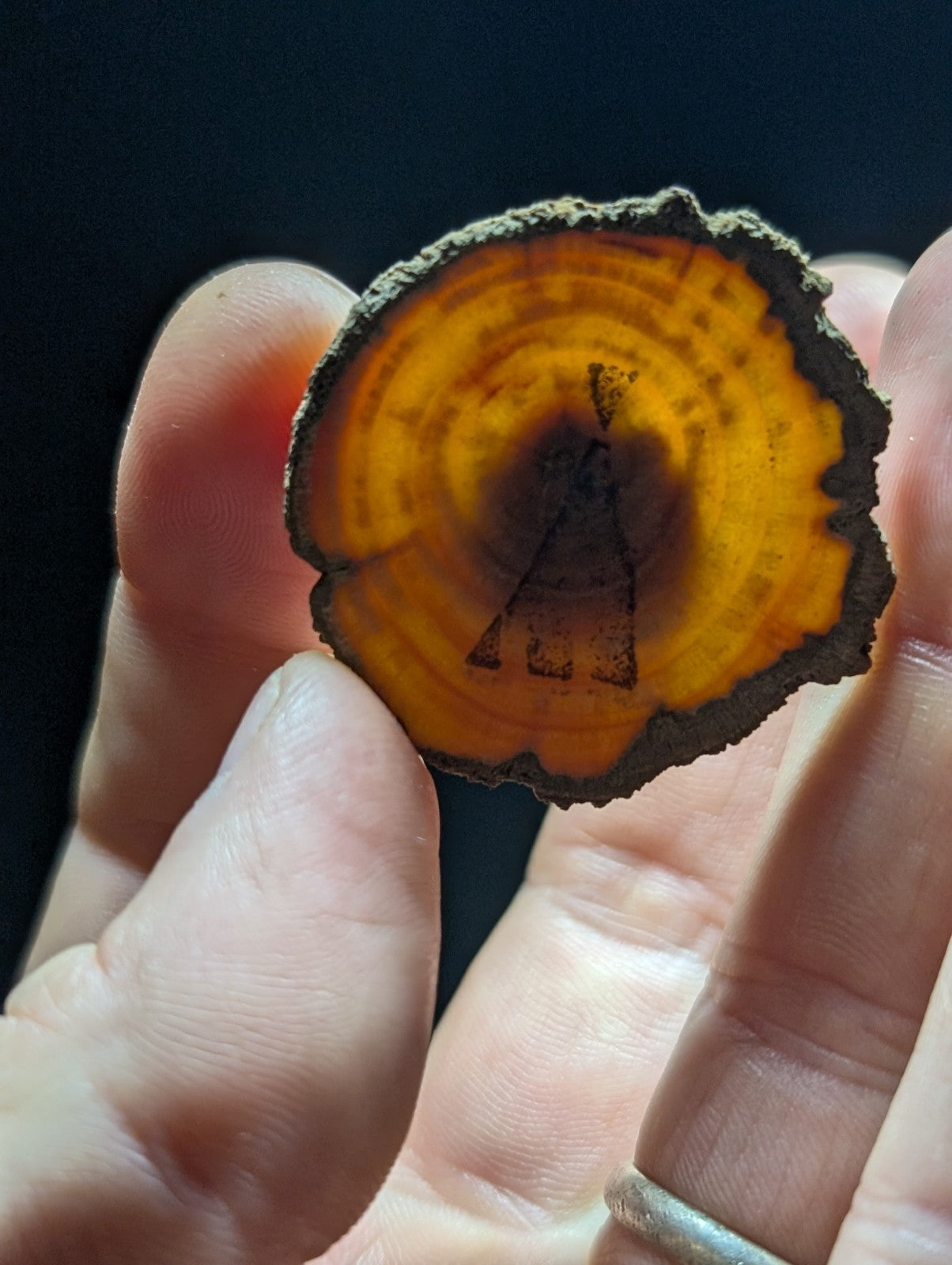 Water-clear Quartz Crystal point w/ beautiful form and excellent clarity. It hosts unique etchings and shows some twinning. The point comes mounted with ticky tacky on a naturally uv-reactive pine knot wood base that also illuminates nicely when light shines through it. The wood itself is naturally infused with the resin of the tree it came from, so it smells wonderful too, like the Arkansas forests from where it was unearthed.