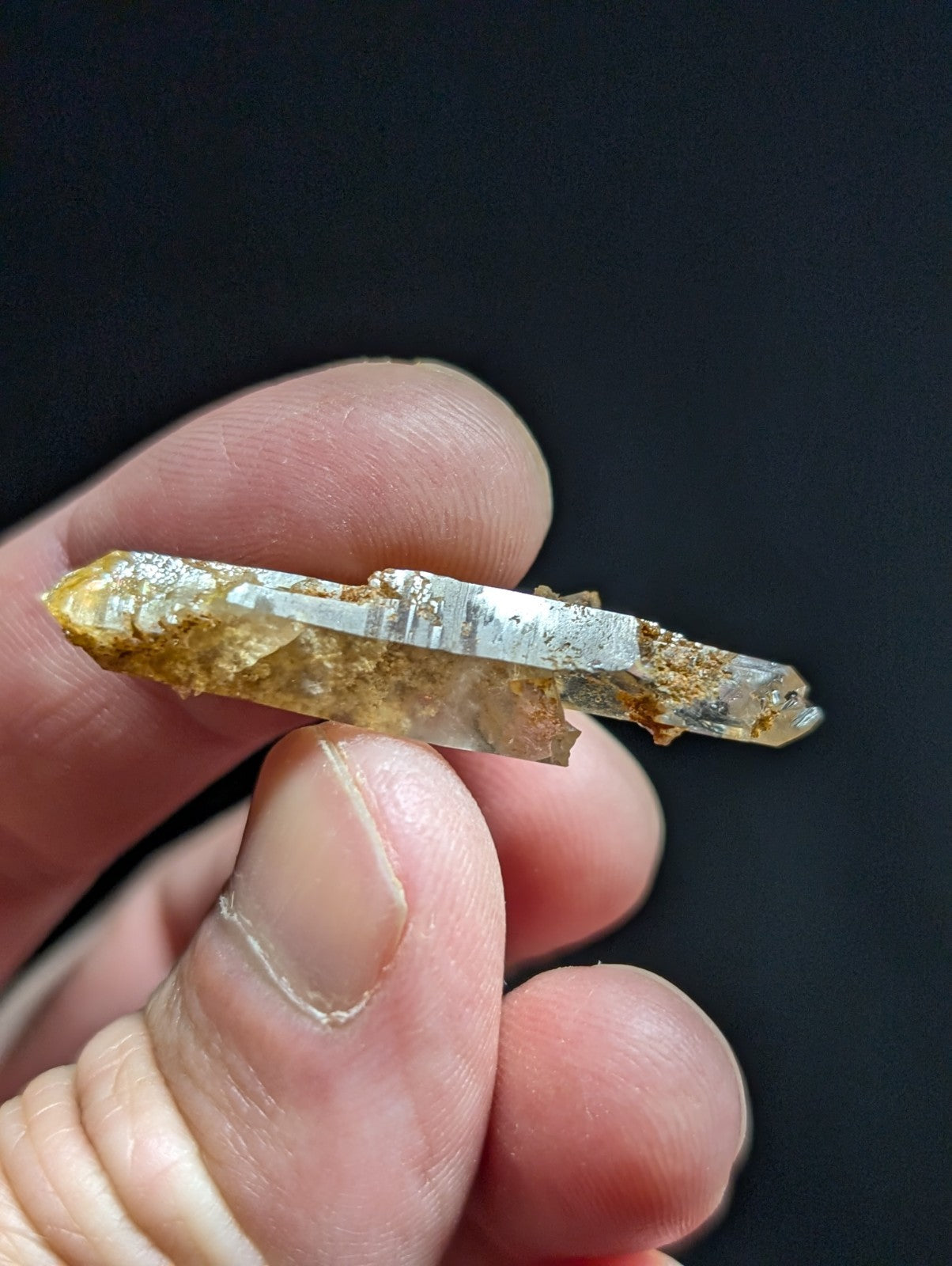 Double Terminated clear quartz with nicely aesthetic sand inclusions and a growth interference void. Excellent and unique specimen.