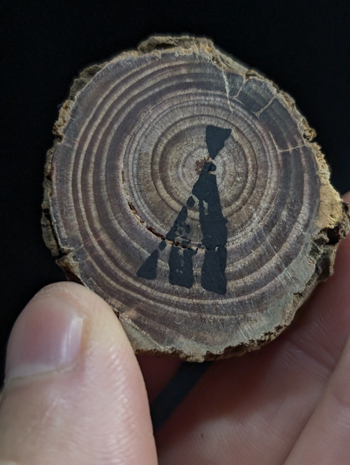 Super unique self healed sheet-Quartz Crystal point. Beautiful "oddity" formation w/ naturally occurring rainbow iridescence on its surface. A wild specimen! It has essentially "re-healed"/re crystallized over and over again as it underwent tremendous geologic changes in its underground environment, creating this complex unique form. The point comes mounted with ticky tacky on a naturally uv-reactive pine knot wood base that also illuminates nicely when light shines through it. The wood itself is naturally infused with the resin of the tree it came from, so it smells wonderful too, like the Arkansas forests from where it was unearthed.