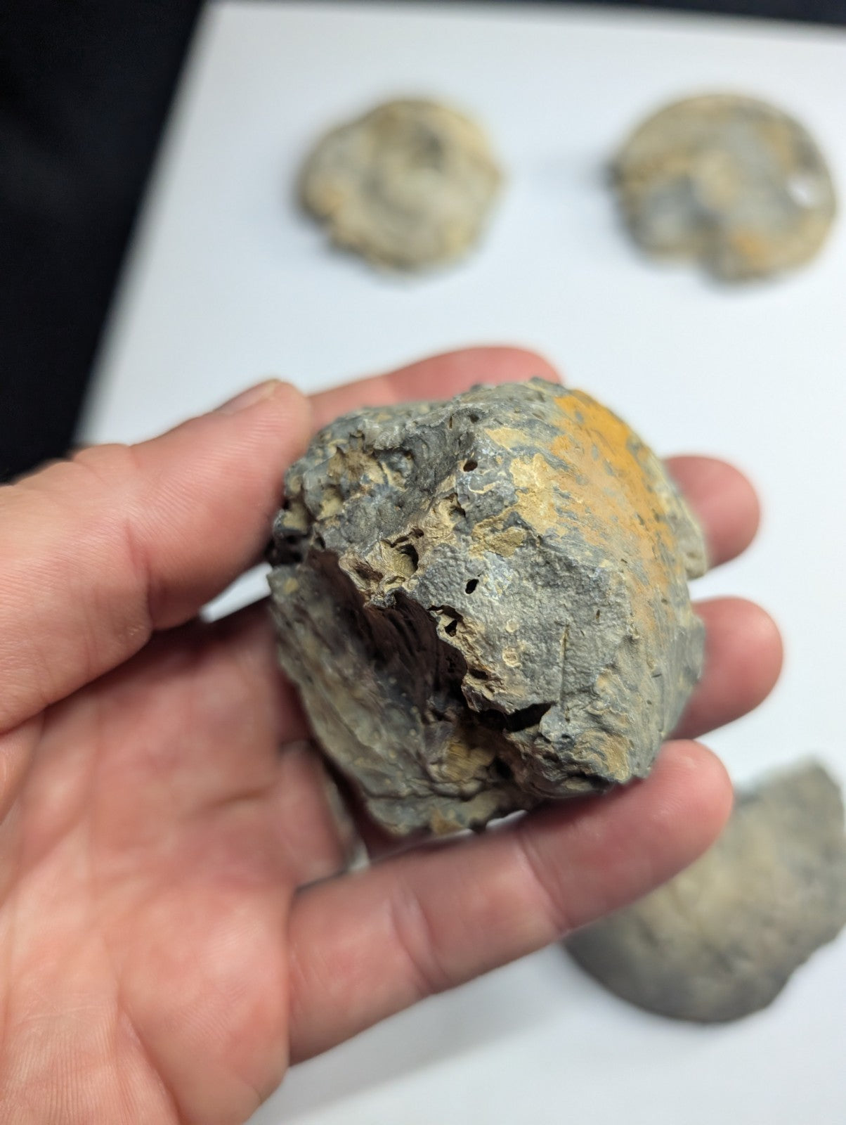 Set of x5 UV reactive Exogyra Ponderosa Clam shell Fossils, from the Marlbrook Marl formation (Cretaceous period), Hempstead County, Arkansas, USA. Beautifully fluorescent under longwave 365 nm UV light. You will receive these exact 5 specimens shown in the listing photographs/video.