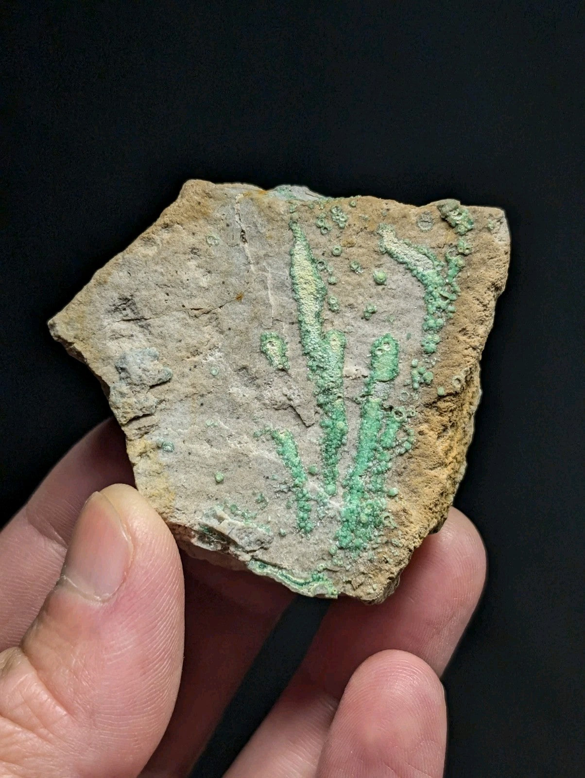 Here is a super unique specimen of green Variscite "sprays" on a matrix of chert. Excellent aesthetics here, and VERY unique. It is the only piece i have ever seen like this. The variscite is nicely crystallized as well, with variscite on multiple sides of the specimen. From our personal collection of "most unique Arkansas mineral specimens".