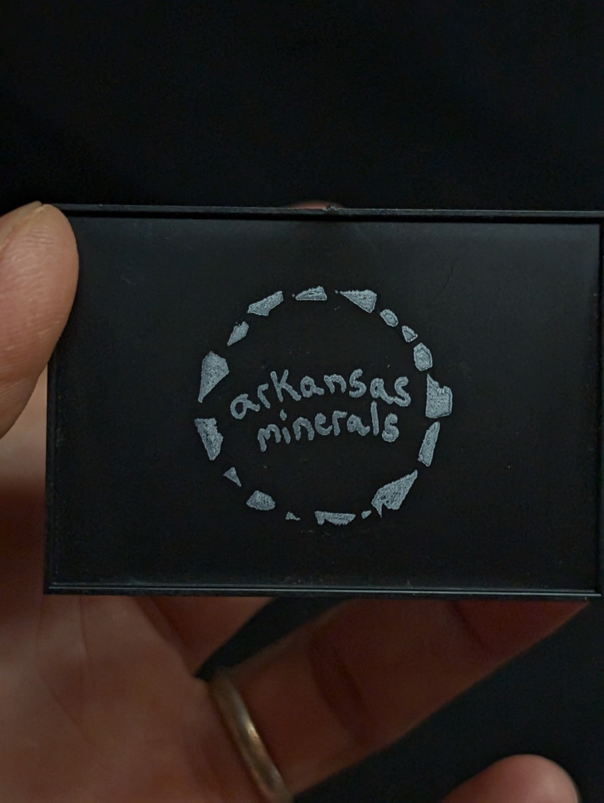 It is mounted in our new boxes we designed and made utilizing a naturally UV reactive Pine knot wood that comes from our land in Arkansas. The back is a photographic print of one of our photos of the Ouachita Forest in Arkansas (the same general area where the Wavellite is found). These are unique and exclusive to our shop.